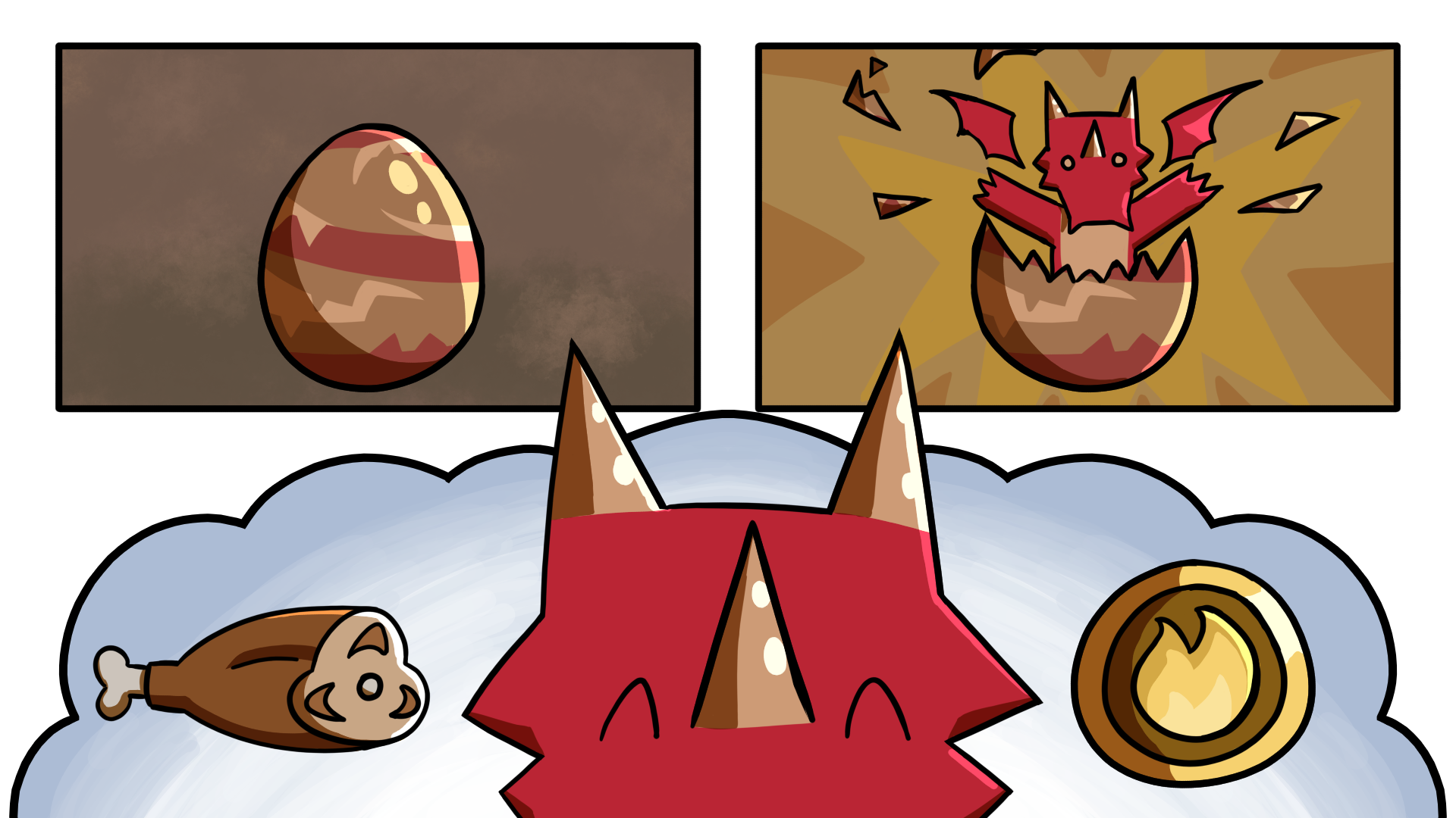 Dragon Life is a 2D collectathon where you play as a dragon hatchling! Truly, the littlest of guys. After hatching out of your egg you discover a distinct lack of shinies and food in you gave! Now, this just won't do! It's your job to go outside and collect shinies and food so you, the little guy, can one day be a big guy!